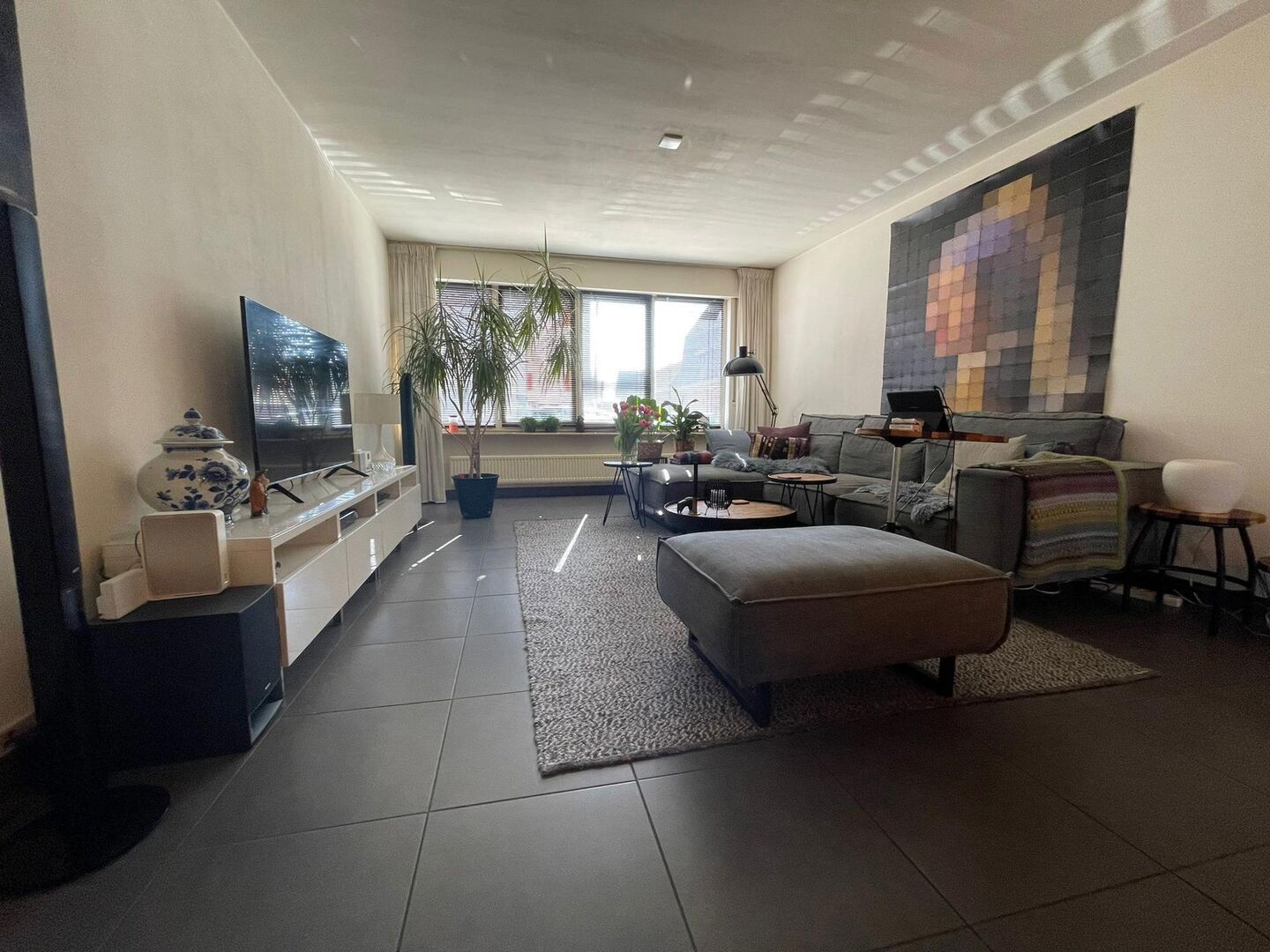 Via de centrale inkom heeft u toegang tot het appartement. De ruime, diepe living biedt ruimte aan een gezellige zithoek en een eettafel. De aangrenzende open keuken is voorzien van verschillende apparaten (damkap, koelkast, kookplaat en vaatwasser).