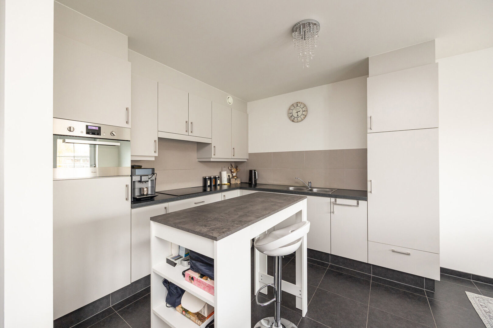 De open keuken is volledig uitgerust met een vitro keramische kookplaat, afzuigkap, combi-microgolfoven, vaatwasmachine en koelkast, en vormt het hart van de woning ideaal voor wie graag kookt en tegelijk contact houdt met familie of gasten.