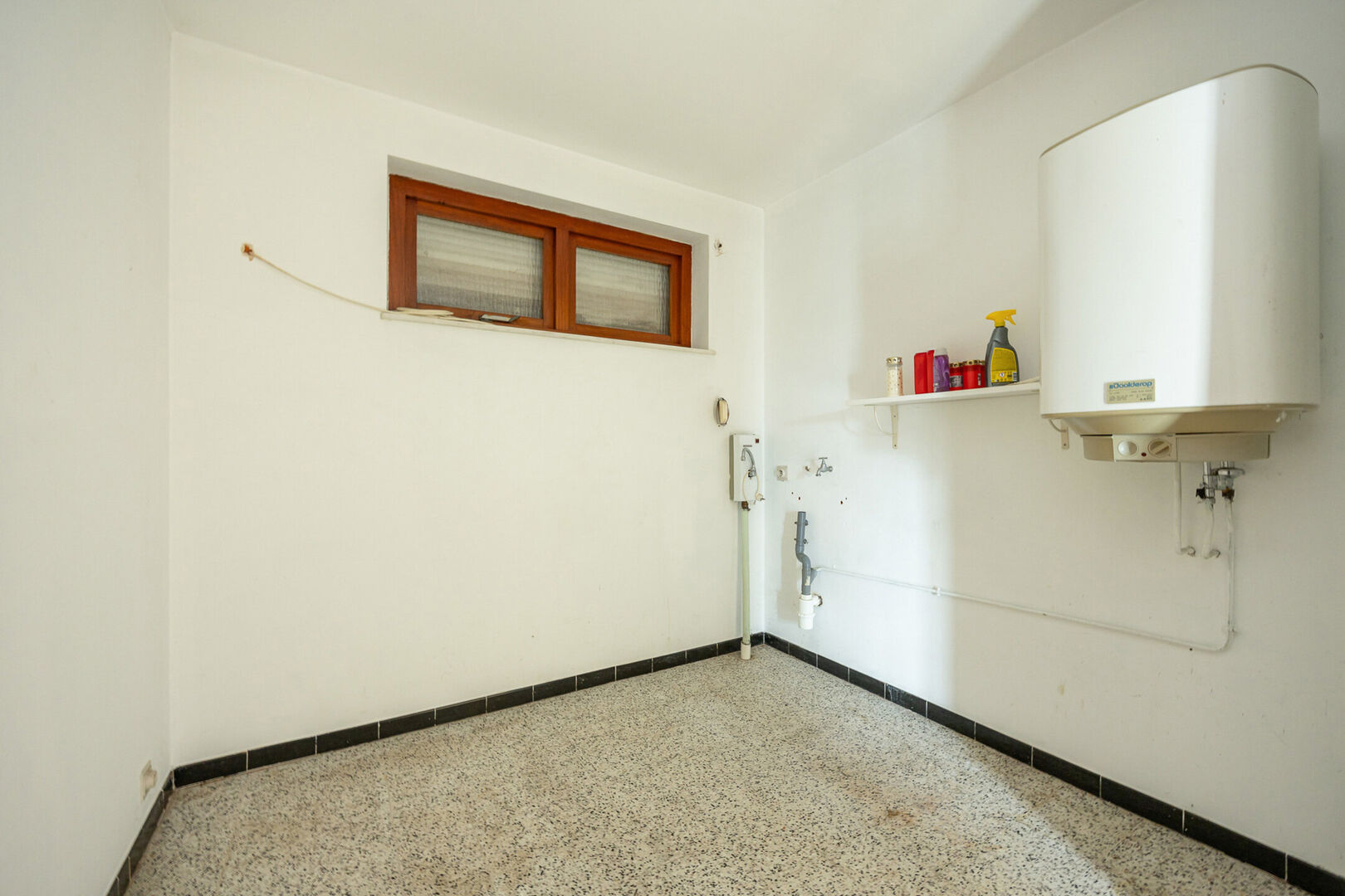 Op het gelijkvloers komt u via de centraal gelegen inkomhal uit in de keuken (12 m²) uitgerust met onder andere een keramische kookplaat, oven koelkast, en dampkap. Via de keuken is de doorgang naar de proviandkelder en toagang tot de kruipkelder. Aan de voorzijde van de woning heeft u toegang tot de woonkamer (34 m²) voorzien van een PVC vloer, een gezellige haard, en elektrisch bediende rolluiken. Tevens is er op het gelijkvloers een badkamer voorzien met ligbad, douche en lavabo. Naast de badkamer is er nog een apart toilet. Op het gelijkvloers bevind zich tevens nog de ruime wasplaats waar de verwarmingsketel is geplaatst. Bovendien zijn er nog drie slaapkamers op het gelijkvloers van 12 m², 10 m² en 10 m².
