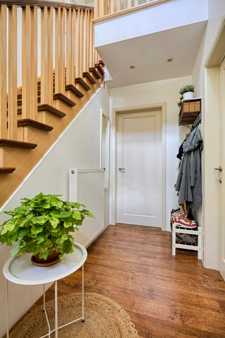 Via de inkomhal met vestiaire, gastentoilet en bureau komt u uit in het leefgedeelte. De royale woonkamer baadt in natuurlijk licht dankzij de grote raampartijen. Dankzij de sfeervolle haard geniet je het hele jaar door van een warme en knusse sfeer, ideaal voor ontspannen avonden of gezellige momenten met familie en vrienden.