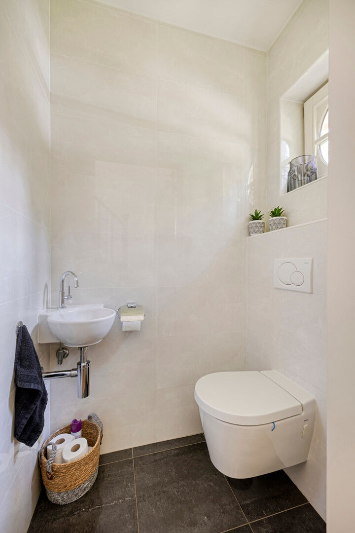 Een bijkomende troef is de kelder op stahoogte. Hier vindt u de technische ruimte en de aansluitingen voor wasmachine en droger. Daarnaast is er een extra kamer die naar wens kan worden benut, bijvoorbeeld als bergruimte, hobbykamer of fitnessruimte.