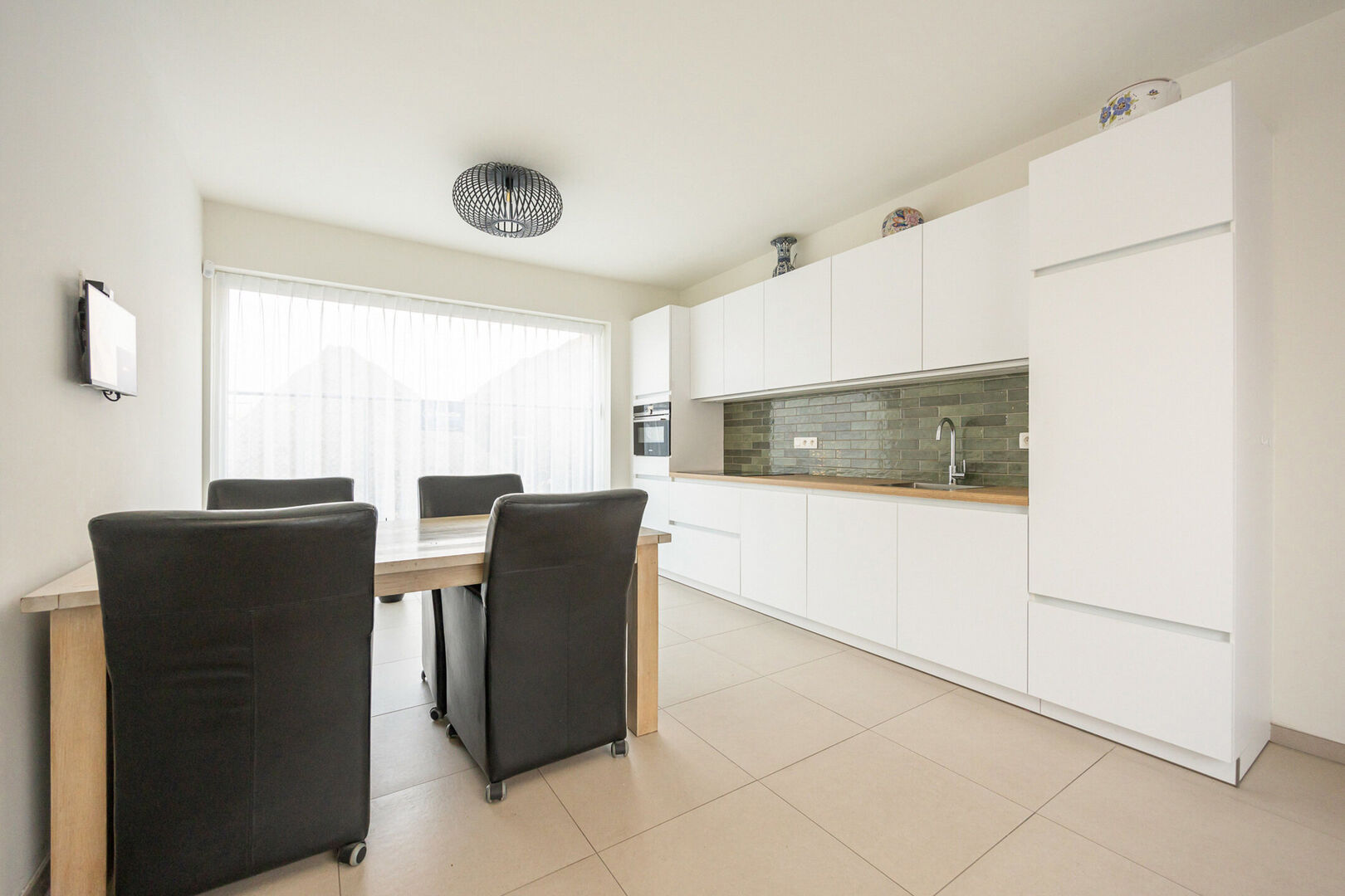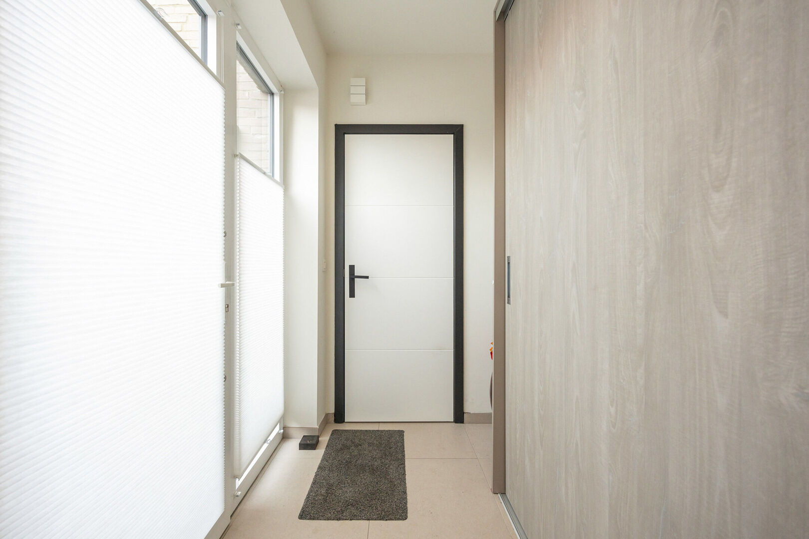 Op het gelijkvloers kom je binnen via de centraal gelegen inkomhal met garderobe en gastentoilet die toegang biedt tot de woonkamer en leefkeuken. De woonkamer is lichtrijk door de grote raampartijen die uitzicht bieden op de mooi aangelegde tuin. Aan de andere zijde bevindt zich de riante leefkeuken die volledig is uitgerust met moderne toestellen zoals een vaatwasser, inductiekookplaat met geïntegreerde dampkap, combi-oven, spoelbak en ingebouwde koelkast. Aansluitend de keuken vind je de technische ruimte waar bovendien de wasmachine aanluiting aanwezig is en veel ruimte is om bijvoorbeeld proviand op te slaan.