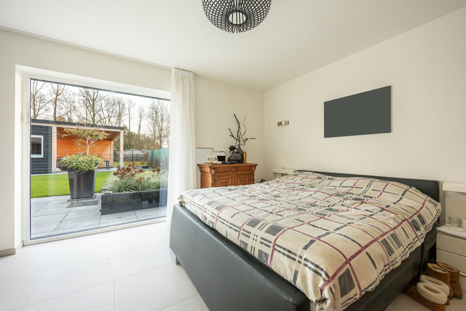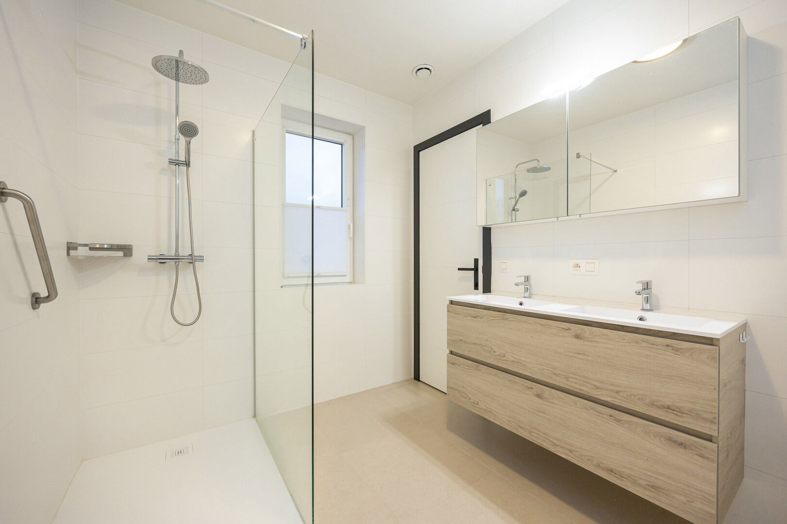 Op de eerste verdieping bevinden zich drie volwaardige slaapkamers waarvan een master bedroom met dressing, een apart toilet en een comfortabele badkamer met zowel een ligbad als een aparte inloopdouche en dubbele lavabo in meubel aangevuld met een spiegelkast.
