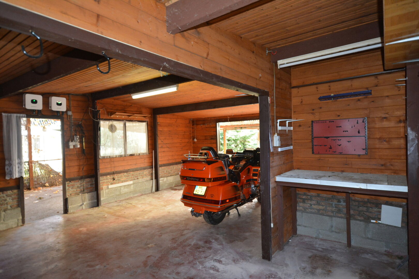 Bij de woning hoort een riante garage/werkplaats (38 m2), ideaal om de auto binnen te parkeren of om heerlijk te klussen aan huis. Aansluitend is ook hier een veranda geplaats waar u heerlijk kunt zitten en kunt genieten van de grote, groene tuin.